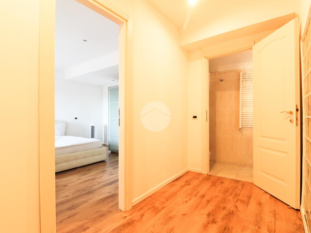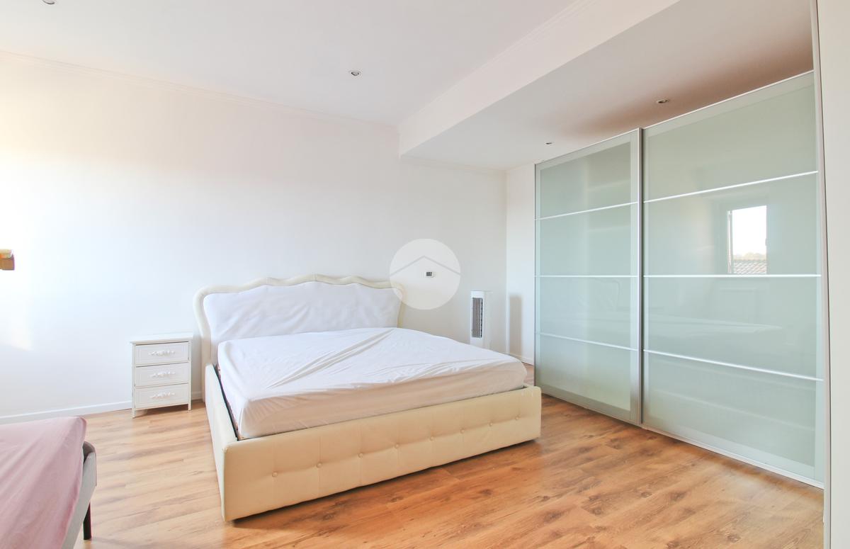 Salendo nella zona notte, l’abitazione offre una spaziosa camera matrimoniale e un bagno con doccia, pensati per garantire comfort e funzionalità.